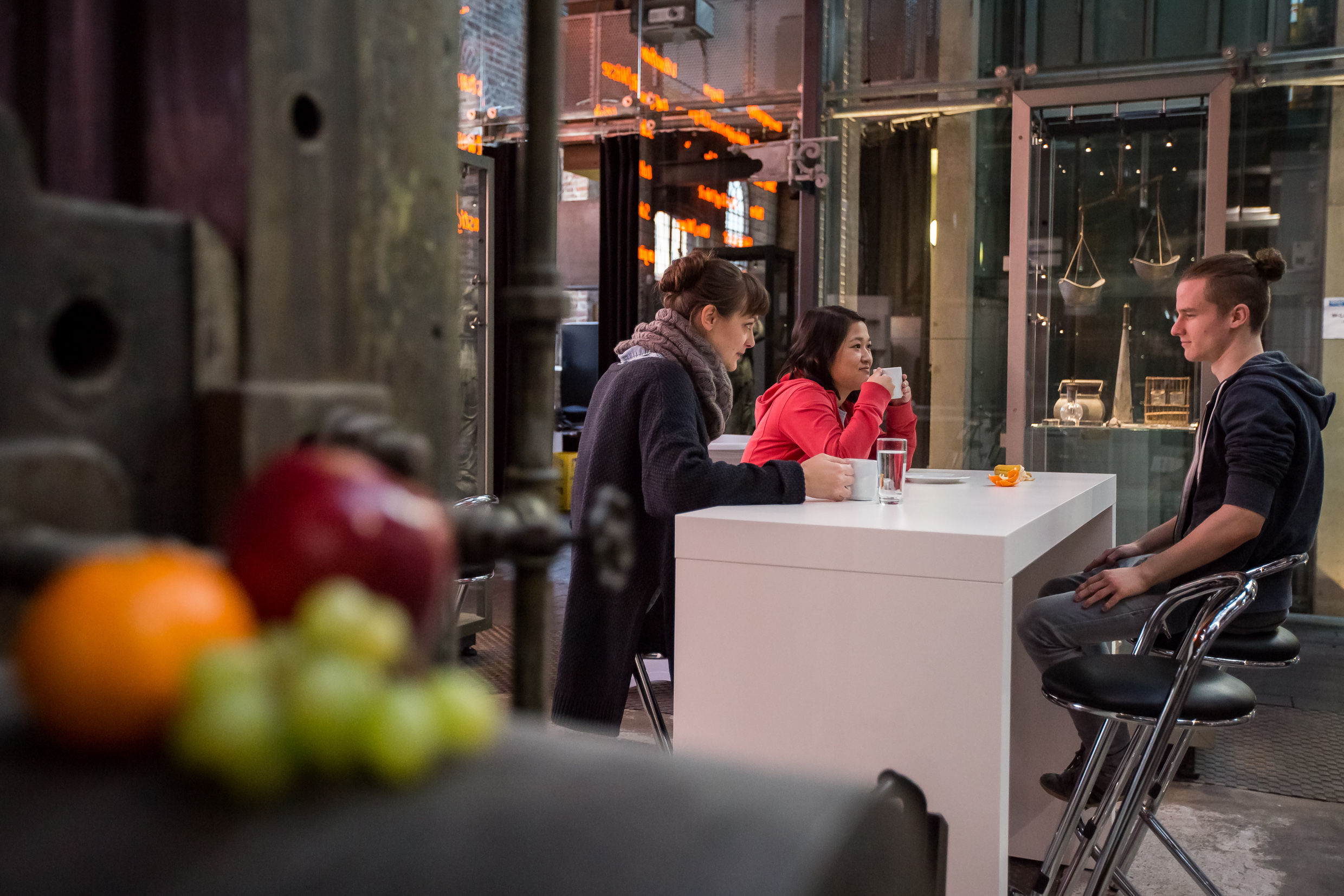 Platz 2 ging an das Team „Projektbüro Vatter & Söhne“. Die Kommunikationsdesignerinnen und Künstler überraschten mit ihrer witzigen Präsentation als Rollenspiel. Ihre Idee: Ein Automat an einem zentralen Ort im Stadtviertel. Dieser „Kumpelmat“ wirft gegen Münzgeld Anekdoten und Angebote aus der Umgebung aus. Dahinter steht der Ansatz, mehr Identifikation mit dem eigenen Stadtviertel zu schaffen und die Nachbarschaften zu aktivieren. Jeder kann über eine Website den Automaten mit Vorschlägen befüllen. Die Jury war vor allem von der Kreativität und dem analogen Ansatz begeistert.