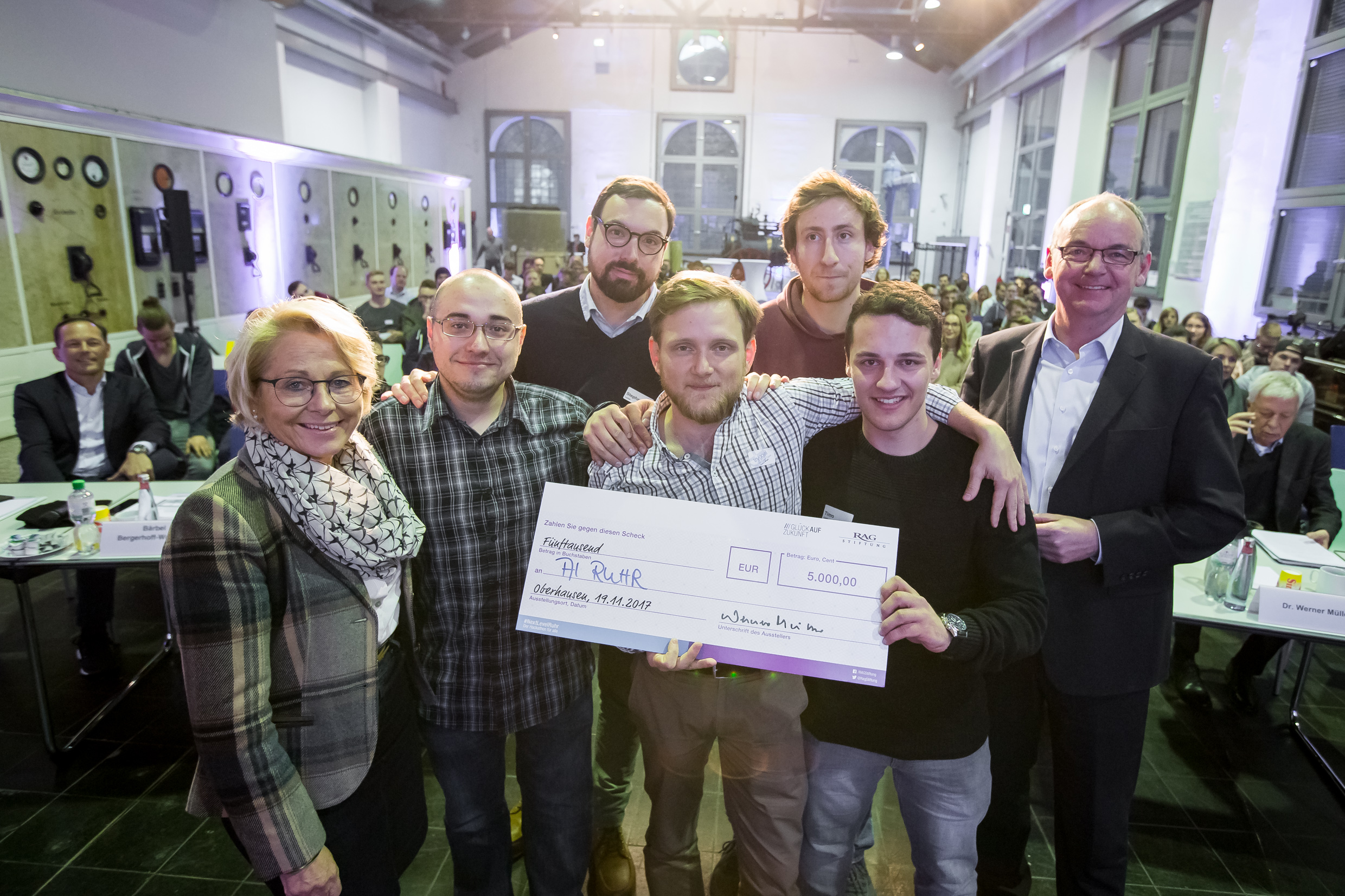 Der zweite 3. Platz ging an das Team „ ... aus Gründen“. Ihr Ansatz: den Gründergeist im Ruhrgebiet stärken. Dafür schlägt die Gruppe vor, dass junge Gründer mit ihren Erfahrungen in die Schulen gehen. Eine Agentur bringt dafür Start-ups mit Schulen zusammen und organisiert den Austausch. In Projektwochen werden dann Schülerinnen und Schüler mit der Start-up-Welt vertraut gemacht. Die Jury lobte vor allem, dass junge Leute frühzeitig mit der Gründerpraxis in Berührung kommen und sieht realistische Umsetzungschancen. Der Juror Ryotaro Bordini Chikushi brachte es auf den Punkt: „Solche Angebote wünscht man sich für die eigenen Kinder.“