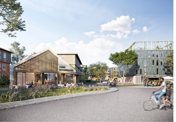 Wie so ein Modellquartier aussehen kann, zeigt das Beispiel „Bergmannsgrün“ in Dortmund-Huckarde, wo Vivawest unter Beteiligung der Mieter neuen bezahlbaren Wohnraum schafft. Darüber hinaus werden mehrere 100 Wohnungen energetisch umgerüstet und modernisiert. Angebote für den täglichen Bedarf ergänzen das Leistungsspektrum: So gibt es dort künftig nicht nur moderne Wohngebäude mit üppigem Grün, sondern zum Beispiel auch eine Packstation, einen Verleih für