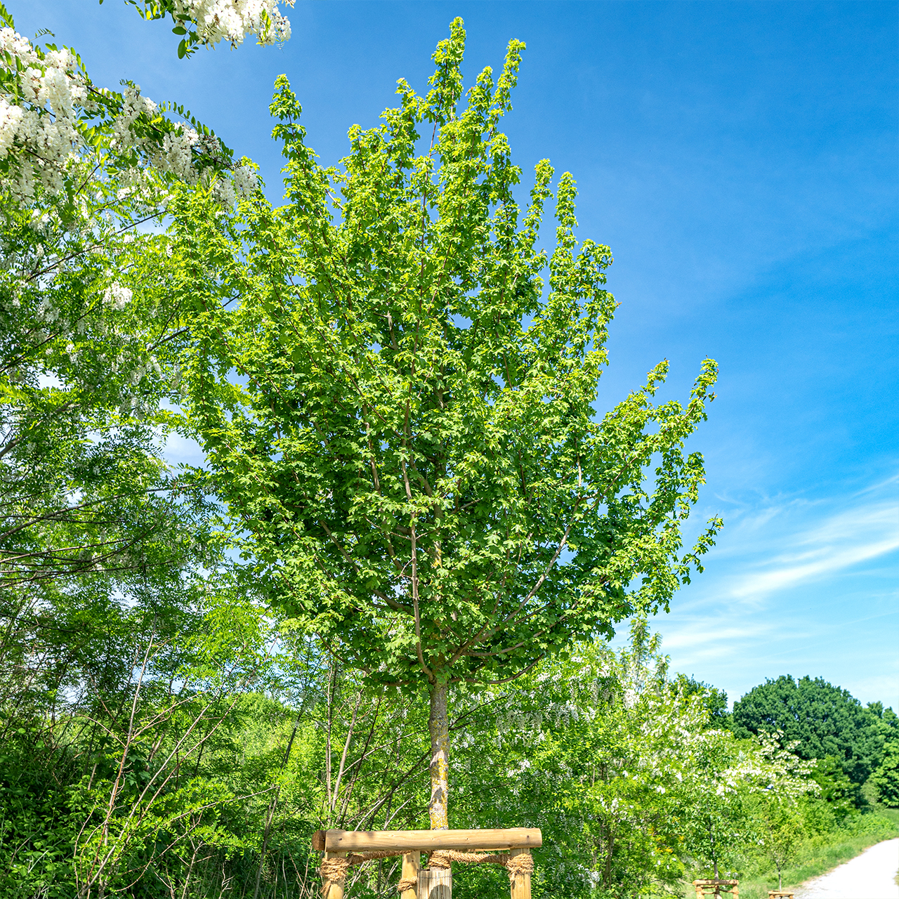 Der Feldahorn wird seit Jahrhunderten als Zier- und Nutzbaum verwendet. Die Sorte 'Elsrijk' kommt aus den Niederlanden und wurde aufgrund ihrer hervorragenden Eigenschaften gezüchtet. Denn einmal angewachsen ist der Feldahorn – im Gegensatz zu anderen Ahorn-Arten – sehr robust und pflegearm. Ein besonderes Merkmal sind seine Samen. Sobald sie reif sind, fallen sie, dank kleiner Flügelchen, kreiselnd wie ein Hubschrauberblatt zu Boden. Später zerfallen sie in zwei Fruchthälften, die von Kindern gerne als „Nasen“ aufgesetzt werden.